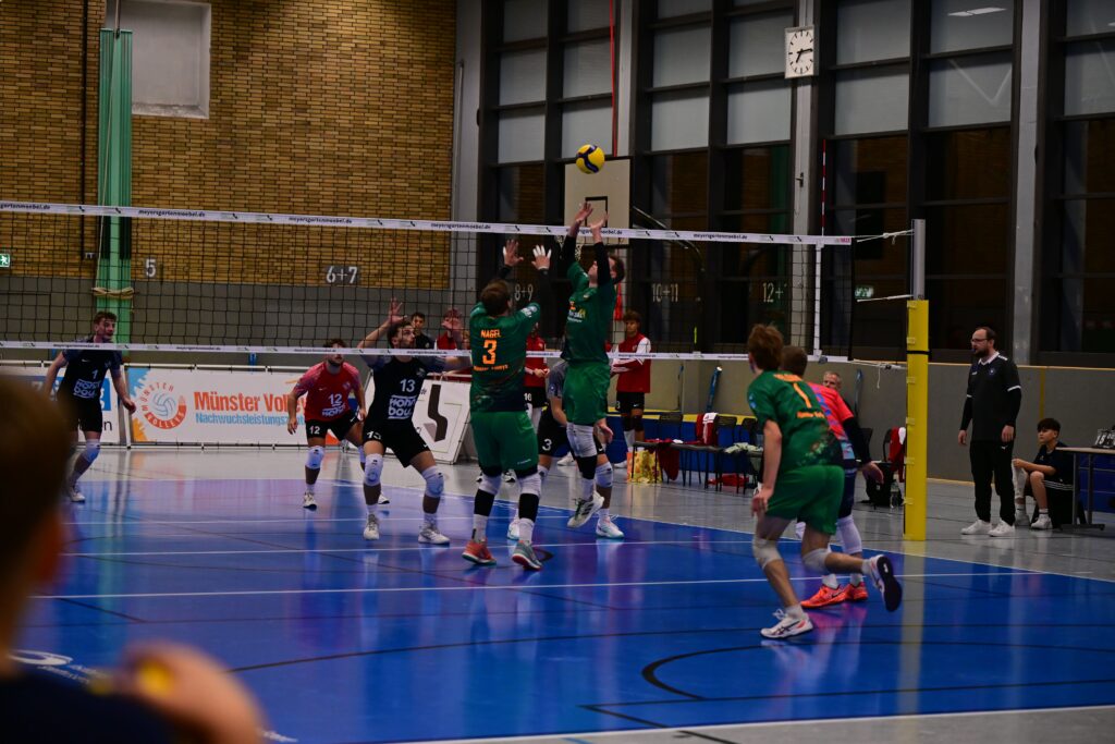 Nach zwei Niederlagen haben die Münster Volleys beim Heimspiel gegen die MLK Volleys Köln jetzt einen souveränen 3:0-Sieg (25:22/25:21/28:26) errungen. Zu Beginn erwiesen sich zunächst die Kölner als stärker: Sie bestimmten die Ballwechsel und hatten immer einen kurzen Vorsprung vor den Gastgebern. Mit der Einwechslung von Finn Heinemann und seiner wirkungsvollen Aufschlagserie wendet sich dann […]